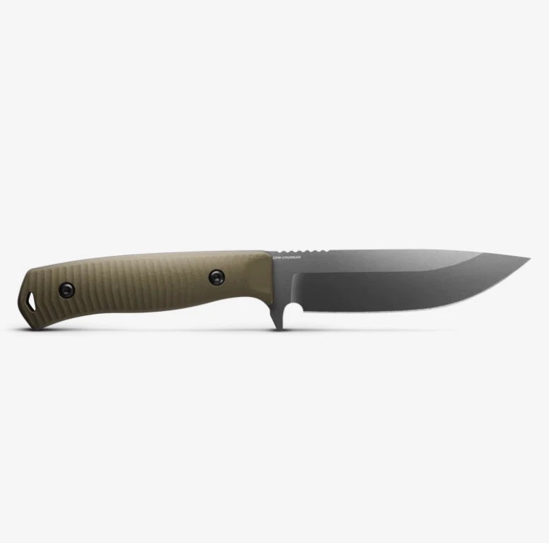 Head into the sticks with the 539GY Anonimus, and you’ll be prepared for every challenge the bush puts in your path. Designed for all-purpose fieldcraft and survival, the low-profile Anonimus features super-tough CPM-CruWear steel with a tungsten gray Cerakote® finish, durable OD green G10 handle scales, a trigger-inspired finger guard, and a precision-ground striking choil. Rounded out by a Boltaron® sheath with an attachable ferro rod loop, the Anonimus is the perfect off-grid companion to have at your side.