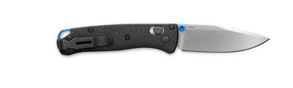 Compact with a touch of class. For those looking to elevate their everyday carry, look no further than the all-new 533-3 Mini Bugout®. Taking cues from its larger counterpart, the 533-3 makes the leap to CPM-S90V super steel and milled carbon fiber handle, featuring a blue anodized aluminum back-spacer and blue thumb studs. Merging signature ultralight utility with ultra-premium materials, the 533-3 Mini Bugout® sets a new standard for this popular line of sub-compact EDC pocket tools.