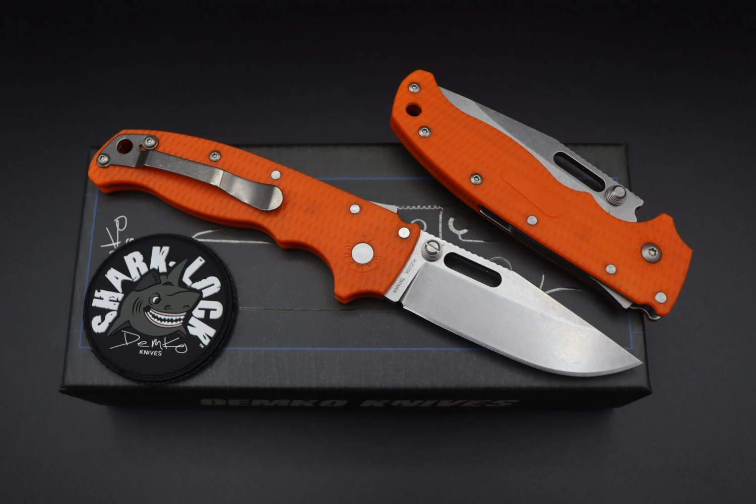 The All New Ad20.5 by Demko Knives features the all new Shark Lock™. The Shark Lock mechanism is situated on the spine of the knife and operated with a ramp-like ‘fin.’