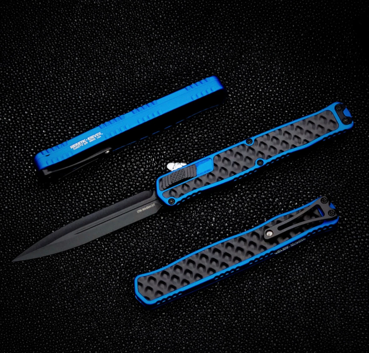 Handle material: Blue Aluminum with Stainless Bubble Inlays