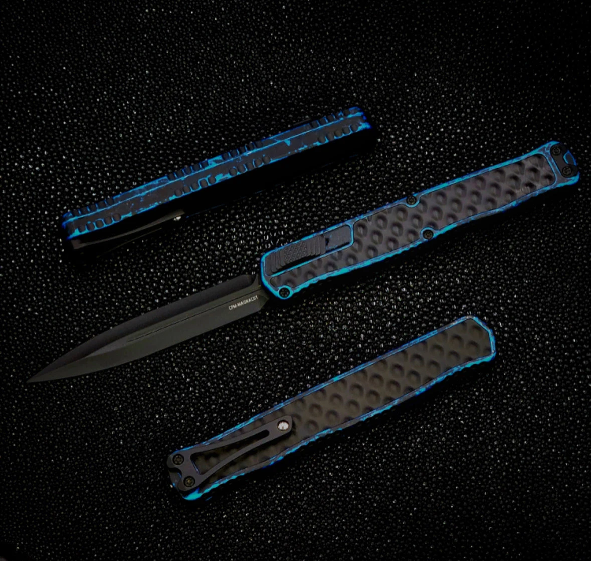 Handle material: Blue Aluminum with Stainless Bubble Inlays