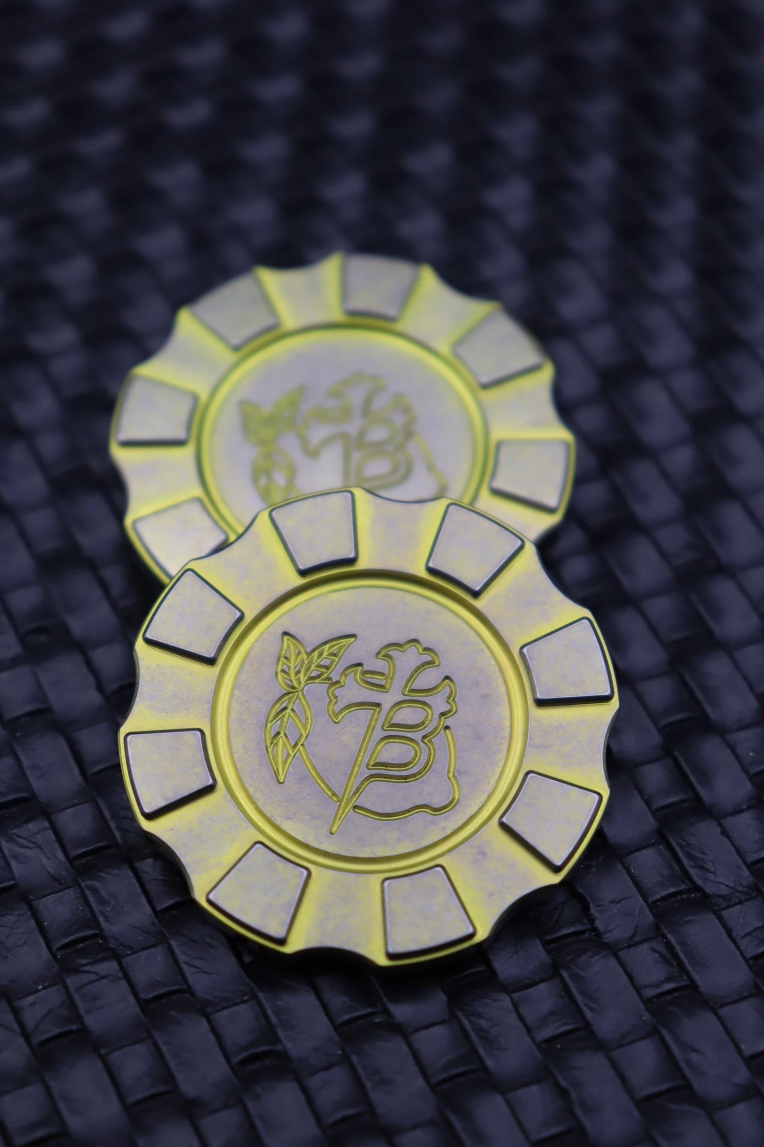 This chip features yellow anodized titanium and the Borka Blades Emblem with a Lemon.