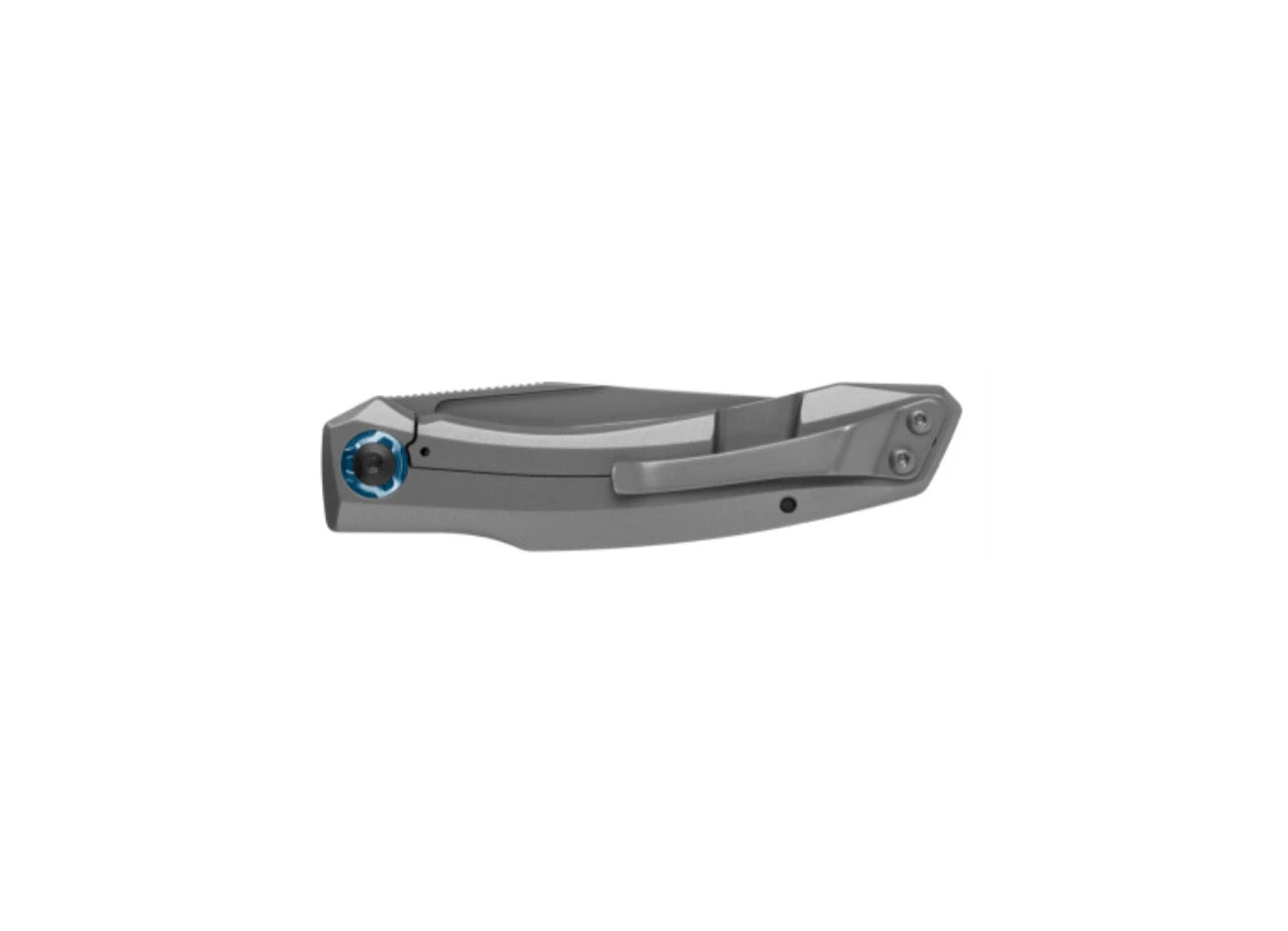 The classy Highball features clean lines and a high-performance blade of D2 steel. This high-carbon tool steel is wear resistant, tough, and offers excellent edge retention. The blade has a two-toned finish: machine stain on the grinds and gray PVD on a recessed groove in the blade upper. This fully manual knife can be opened one-handed using the recessed groove in the handle like you would a thumb stud. But because there is no thumb stud, the Highball retains its streamlined look. The steel handle is contoured for a comfortable grip. A pop of blue comes from the custom trim ring that surrounds the pivot.