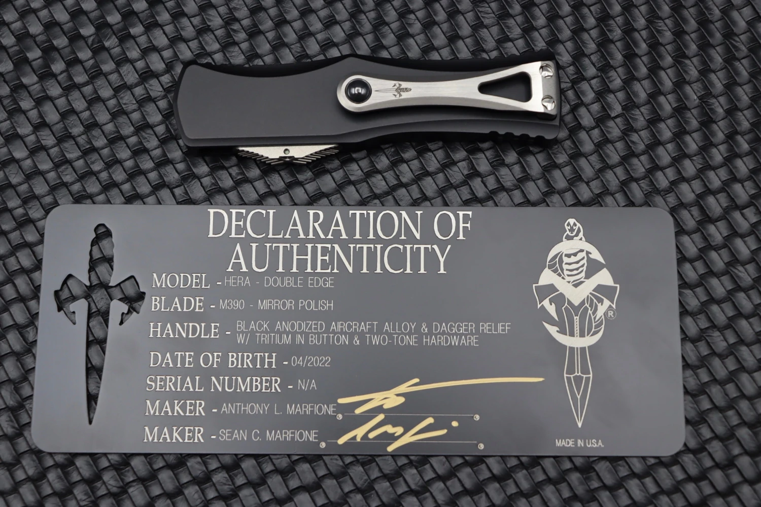 Microtech Hera Shadow Double Edge DLC Fully Serrated 702-3DLCTSH