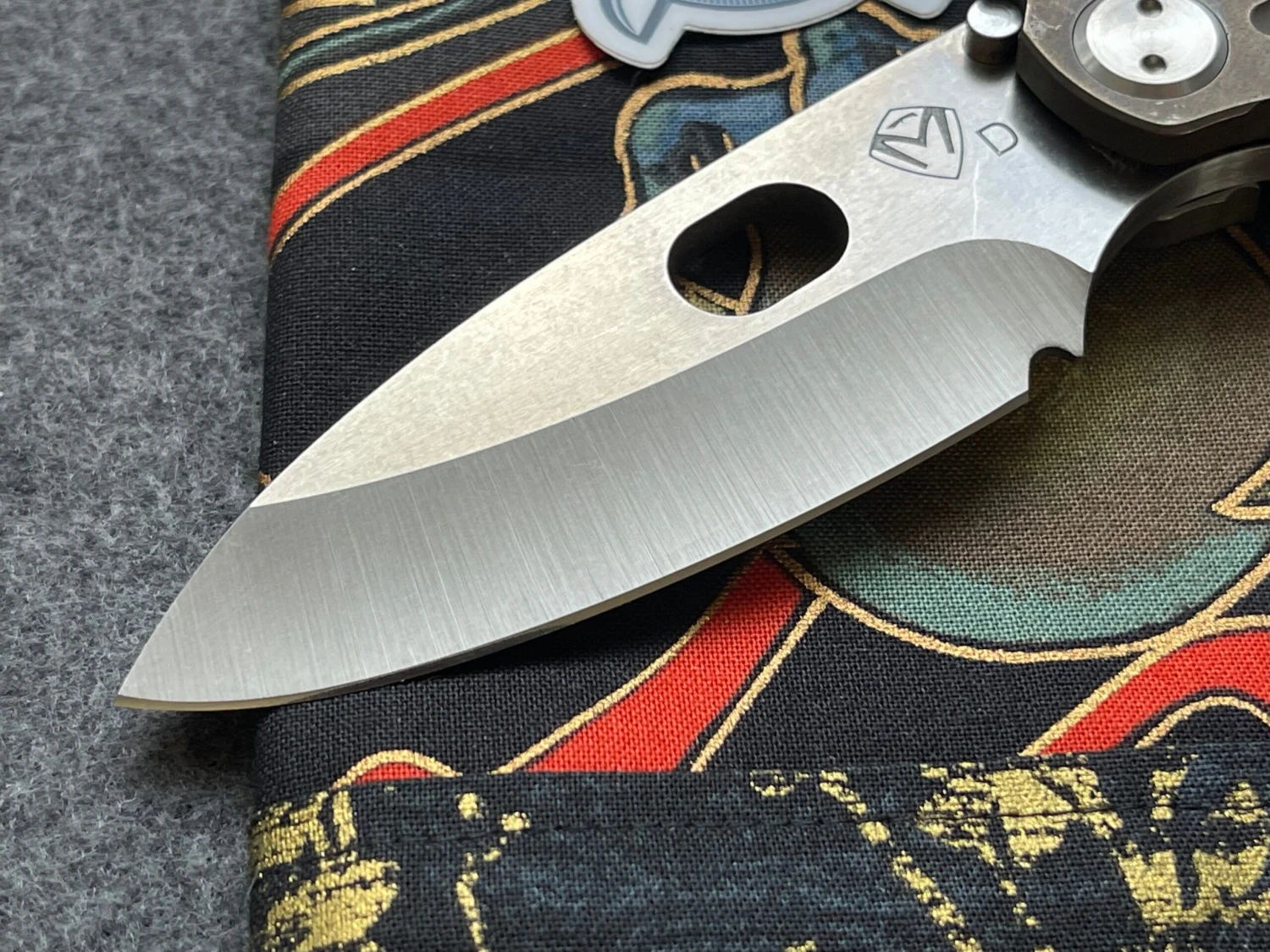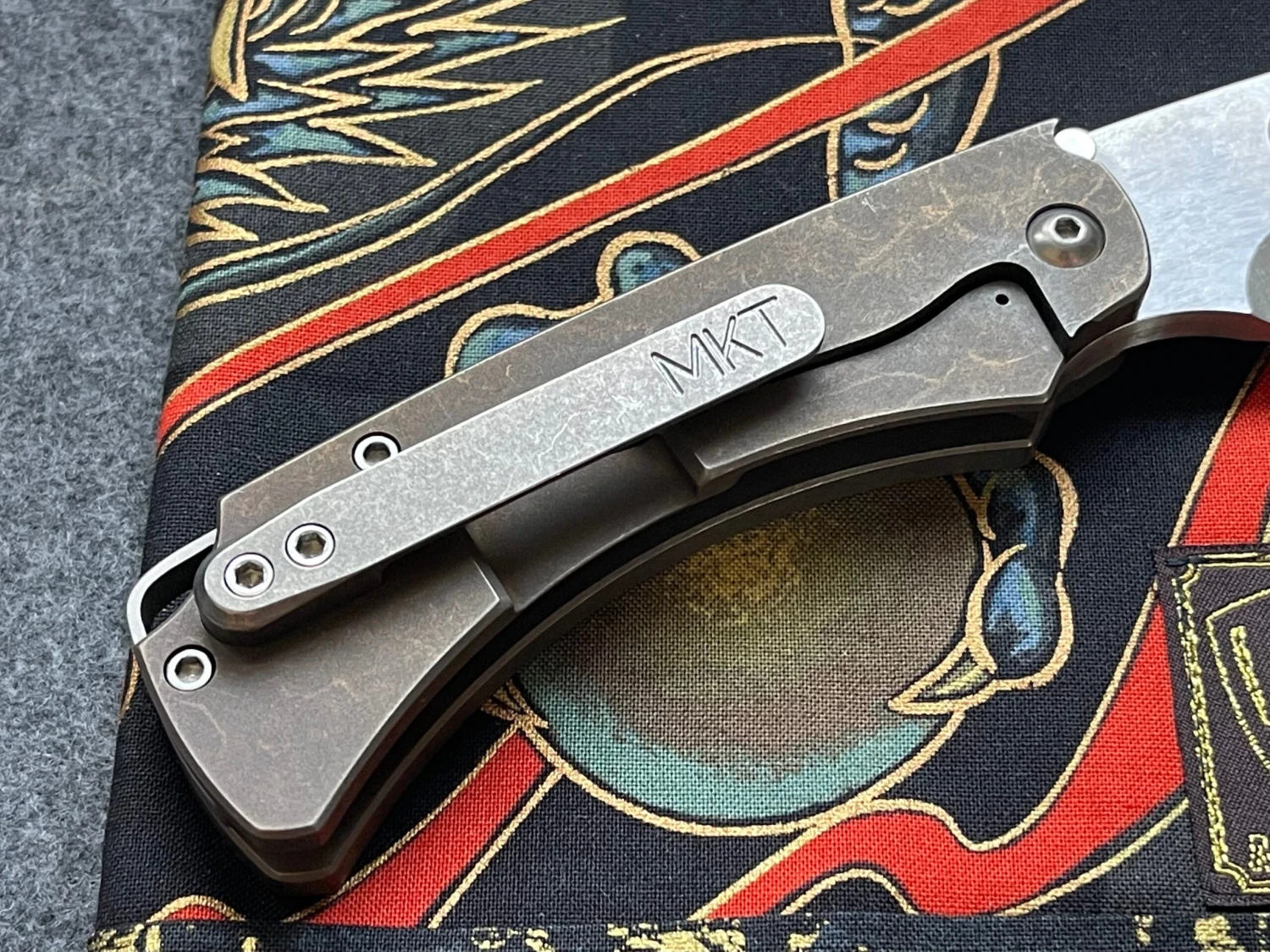 This Colonial features a hand ground CPM-D2 blade with a bronze milled titanium scale.