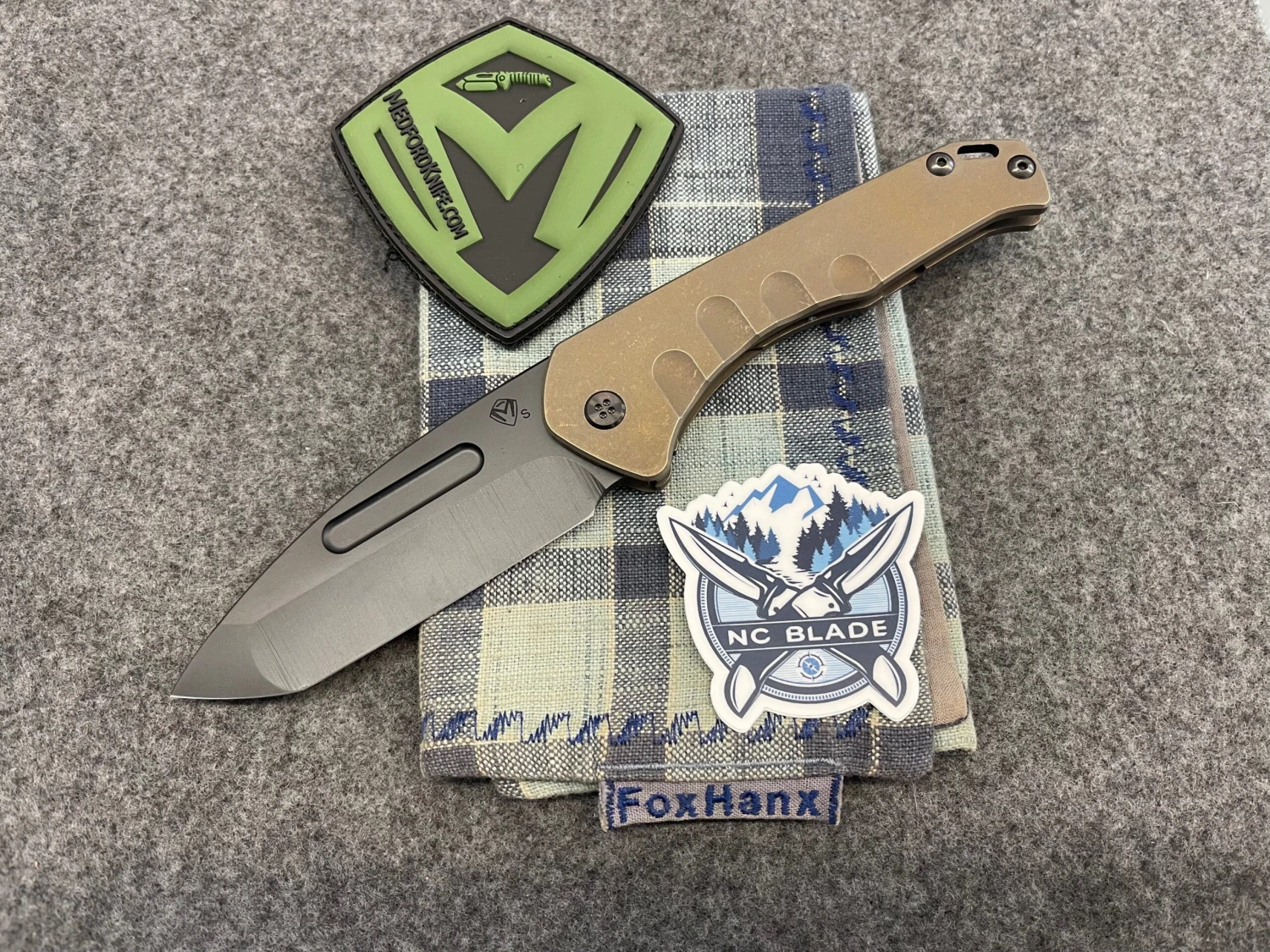 Medford TFF-1 Fat Daddy Faced Bronze Handles W/ Bronze Hardware, Flamed Clip & Vulcan S35VN