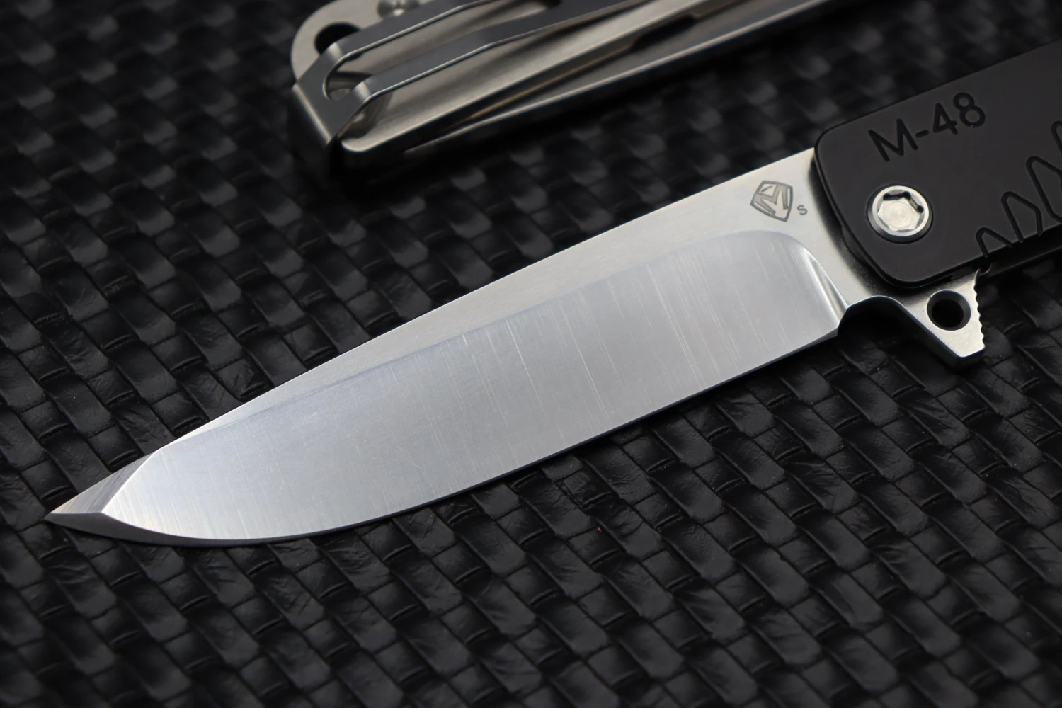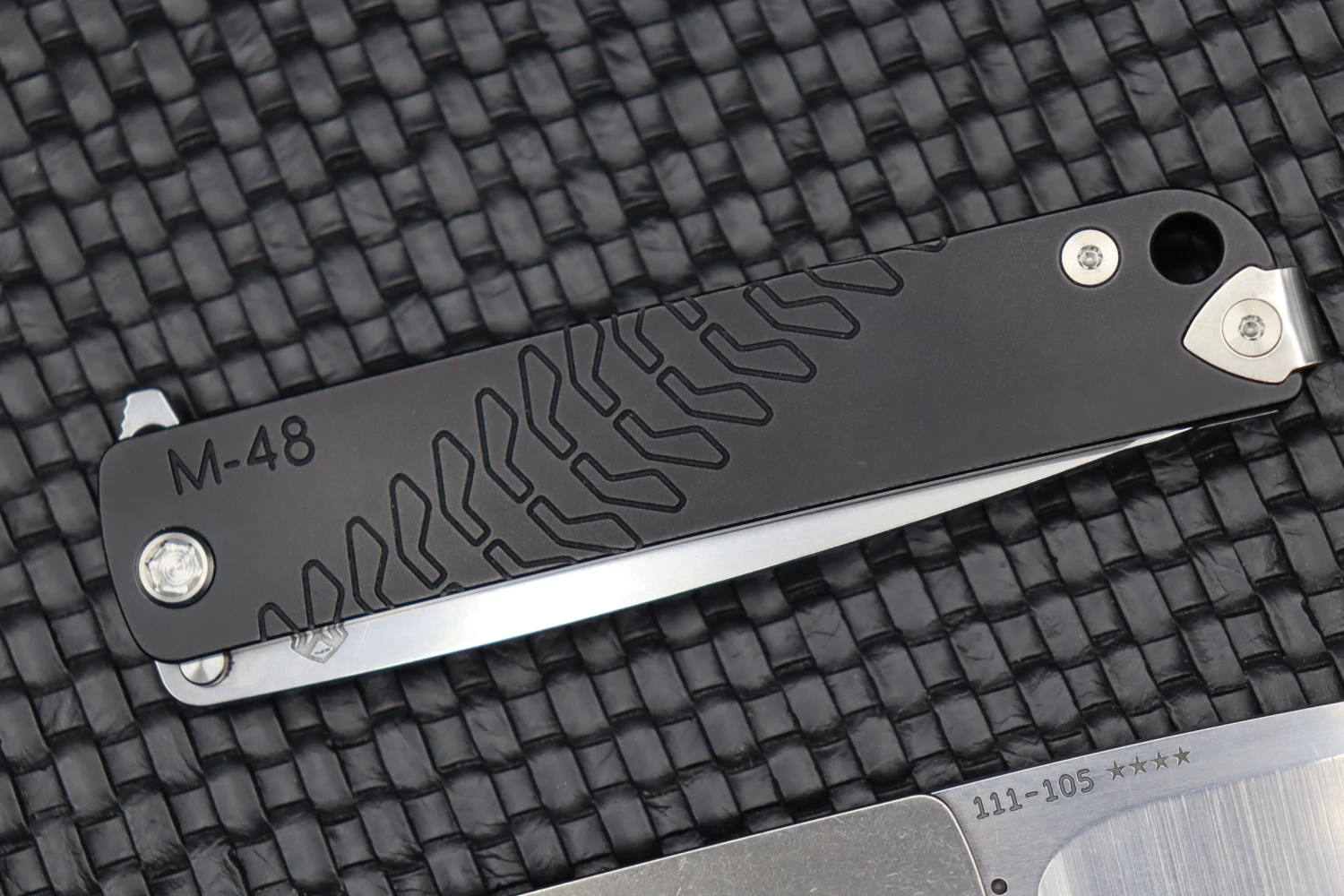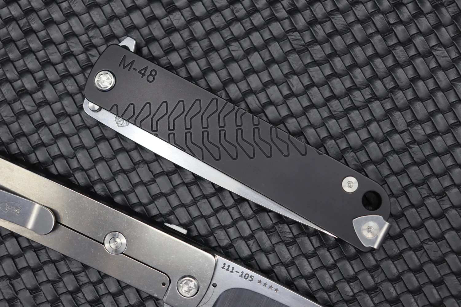 A homage to the M-48 Patton main battle tank and its four-man crew. 30 mph was never so exhilarating. A hybrid flipper on bearings with an Al handle, Ti spring and our newly introduced OTL and a reversible clip. At almost 9” fully deployed you have a very useful blade and with its hybrid construction, EDC friendly. With our new, innovative Magnus Edged™ tip, a hand-ground blade unlike any other. Lastly, fun “Easter Eggs” on the blade and clip.