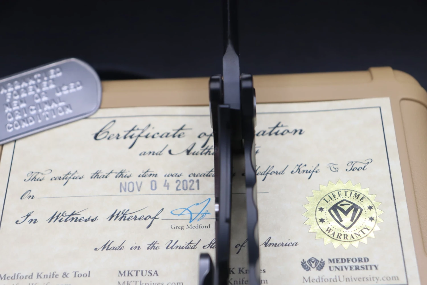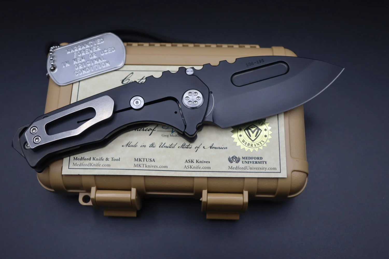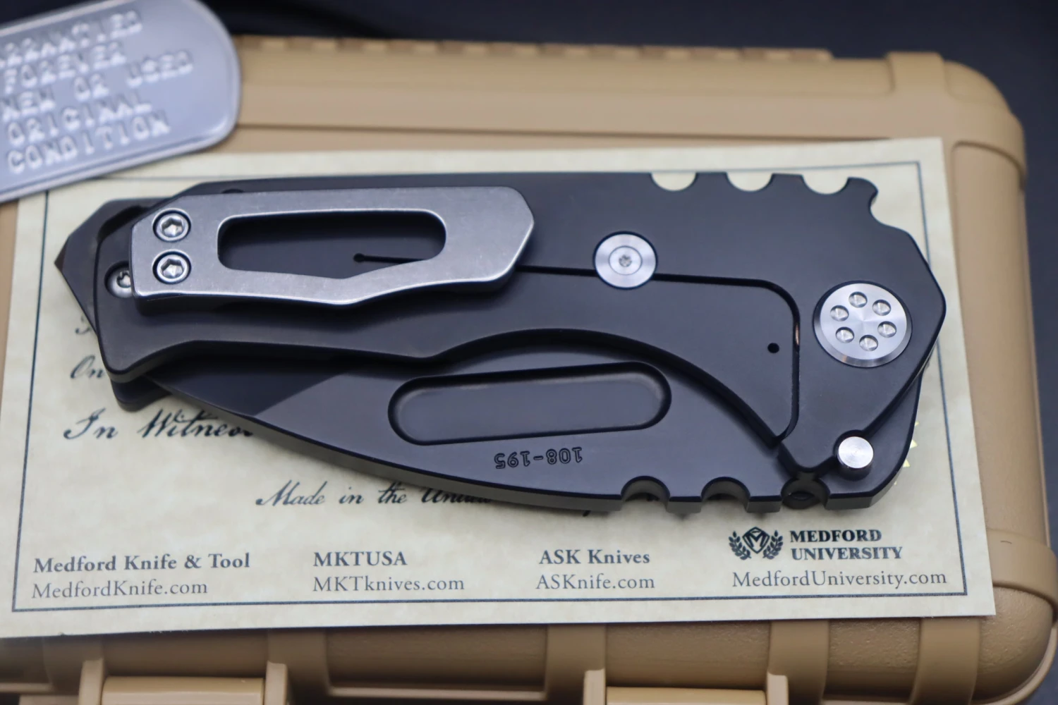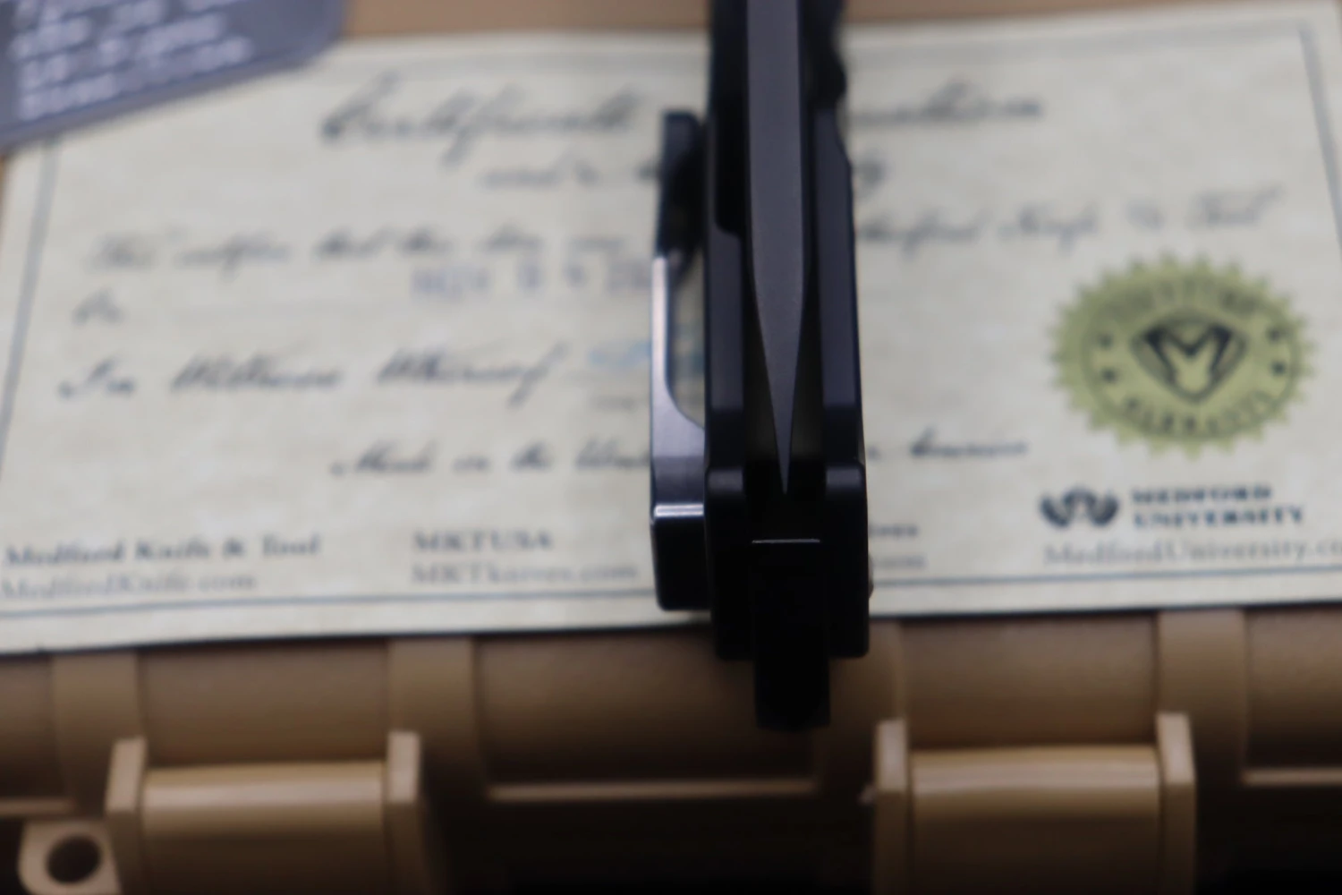 This knife features a hand ground drop point 3V PVD blade with matching PVD coated handles. It has the new style tumbled finish pocket clip.