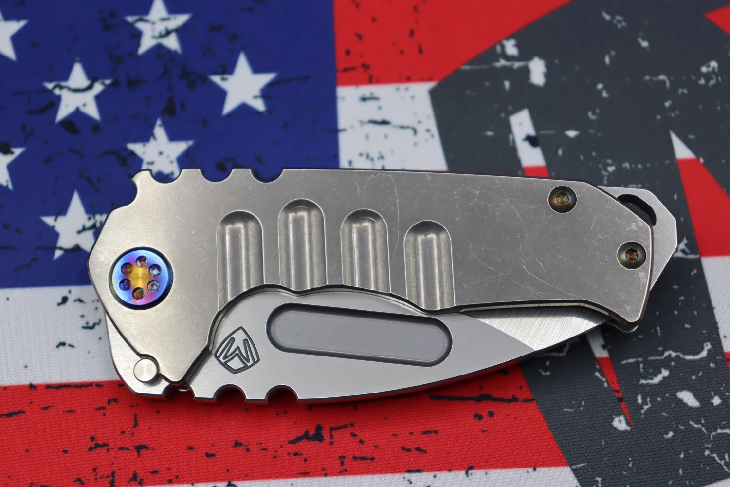 This is the ORIGINAL Praetorian design size. The Knife was made in its current full size as a printing fluke as a novelty! Who knew it would take the knife world by storm? This was the predetermined size of the design. The Praetorian Genesis is for that “This one is too big, this one is too small” knife nut. The Praetorian Genesis is that middle ground that looks as bad-ass as ever and wont spook Democrats in your presence but is still large enough for nearly anything. Folding blade steel comes S35VN standard.