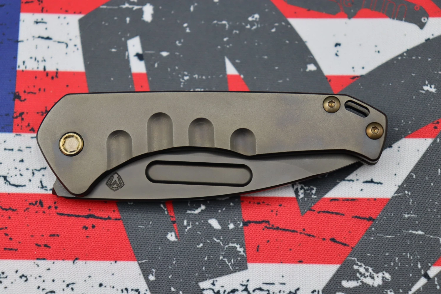 This knife has all the style of our rescaled Praetorian knives but is amongst the slimmest in the business. It truly disappears in the pocket. With 1/8” thick slabs for the handles and blade this knife can cross over between work jeans and dress pants. Shorts??? No problem. This knife is light but punches way above its weight. Perfect for the blade-slinger that wants to carry darn near everywhere and likes his knife to make a quiet statement. Slim, light, tough and ready to be used all day long.