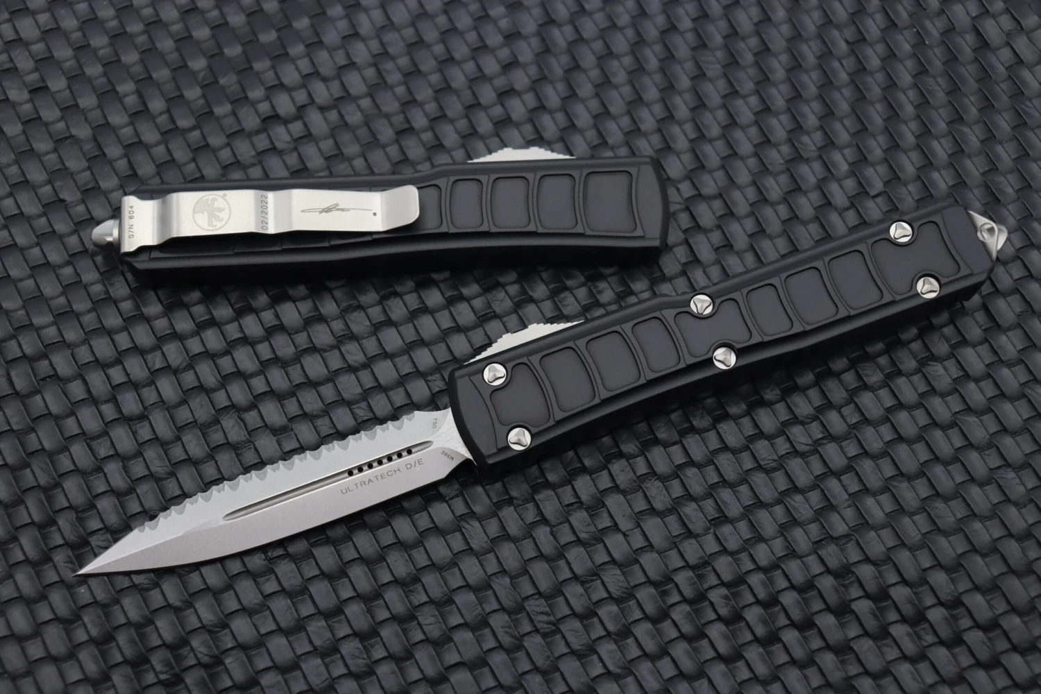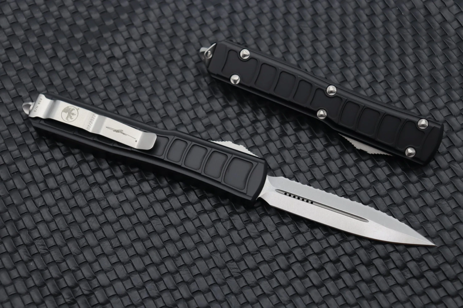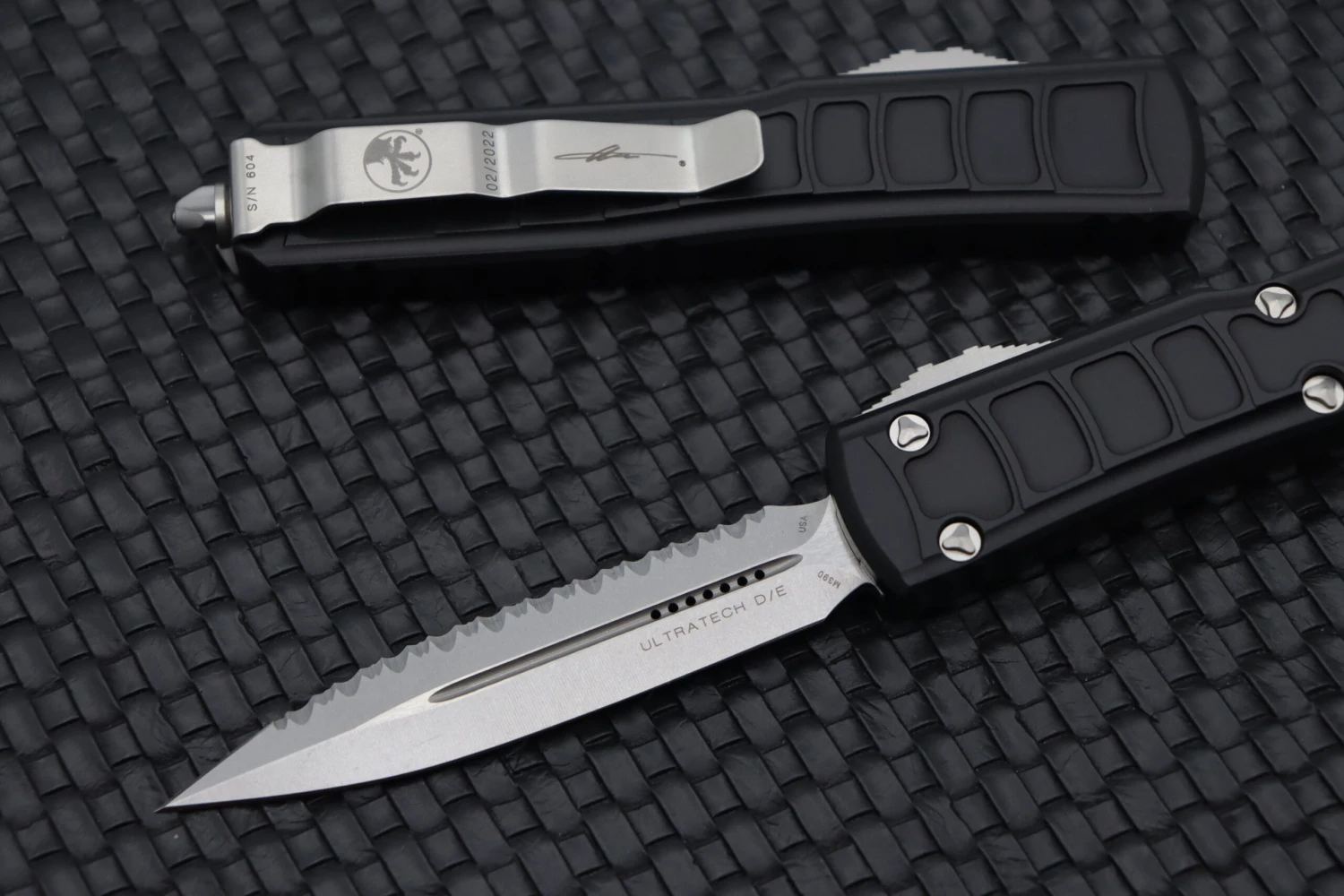 As the flagship model of the Microtech® OTF lineup, the Ultratech® sets the standard for Out-The-Front technology. Proprietary design allows the firing spring to be at rest in both the open and closed positions, drastically reducing wear on the internal firing mechanisms. The contoured chassis handle provides a lighter and more ergonomic feel and comes in a smooth, flat finish.