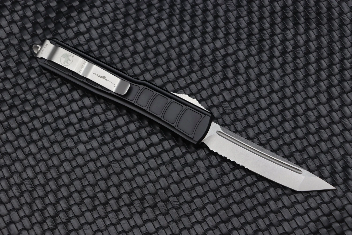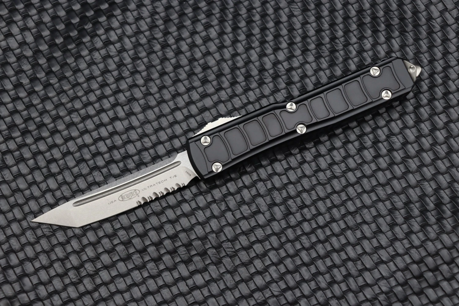 As the flagship model of the Microtech® OTF lineup, the Ultratech® sets the standard for Out-The-Front technology. Proprietary design allows the firing spring to be at rest in both the open and closed positions, drastically reducing wear on the internal firing mechanisms. The contoured chassis handle provides a lighter and more ergonomic feel and comes in a smooth, flat finish.
