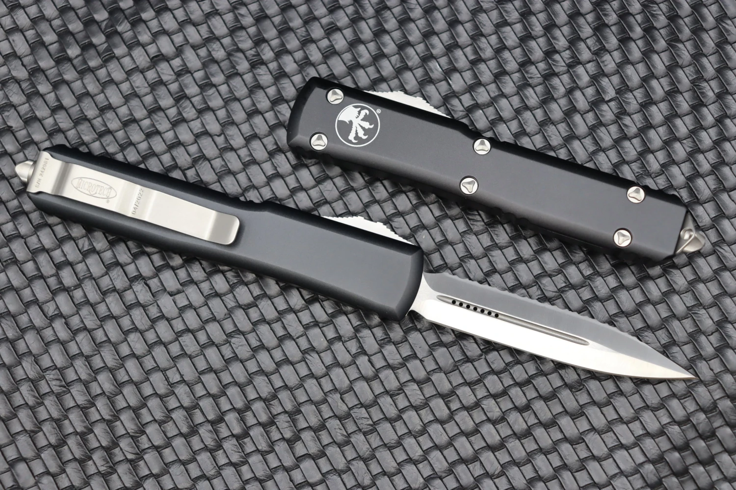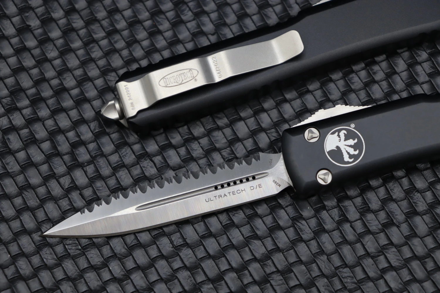 As the flagship model of the Microtech® OTF lineup, the Ultratech® sets the standard for Out-The-Front technology. Proprietary design allows the firing spring to be at rest in both the open and closed positions, drastically reducing wear on the internal firing mechanisms. The contoured chassis handle provides a lighter and more ergonomic feel and comes in a smooth, flat finish.