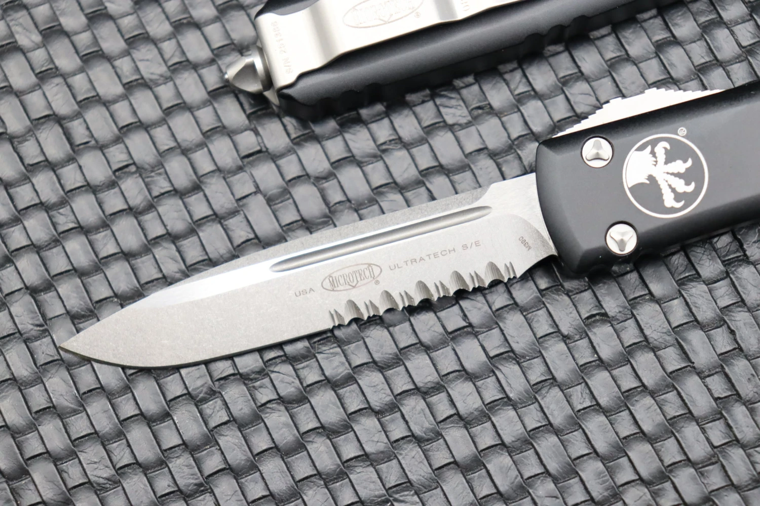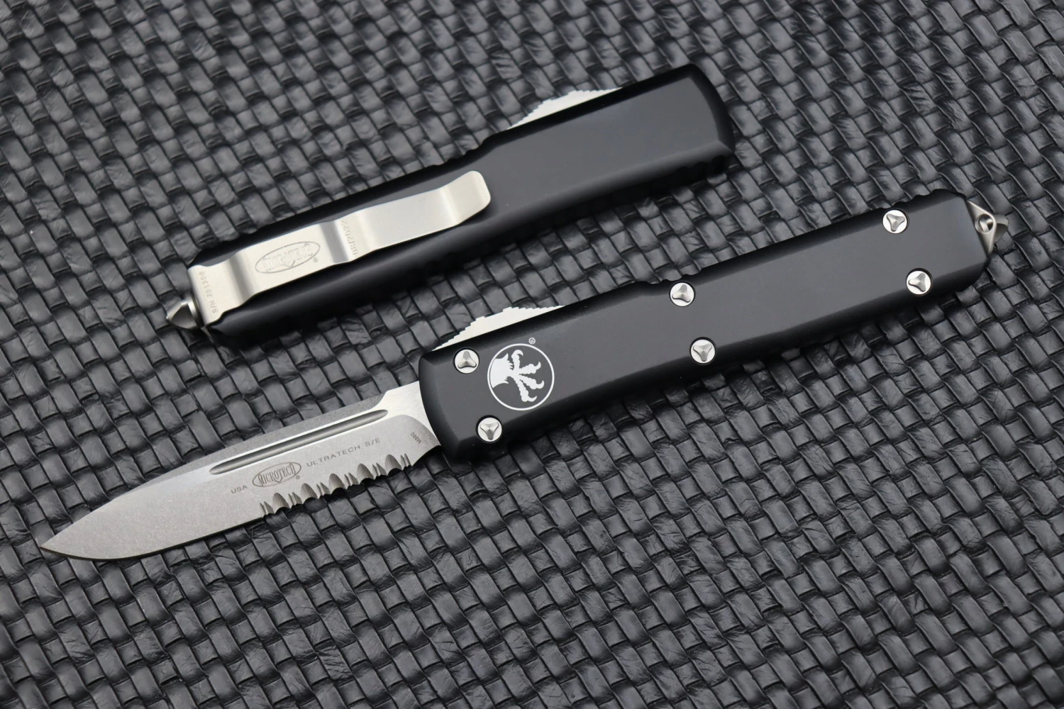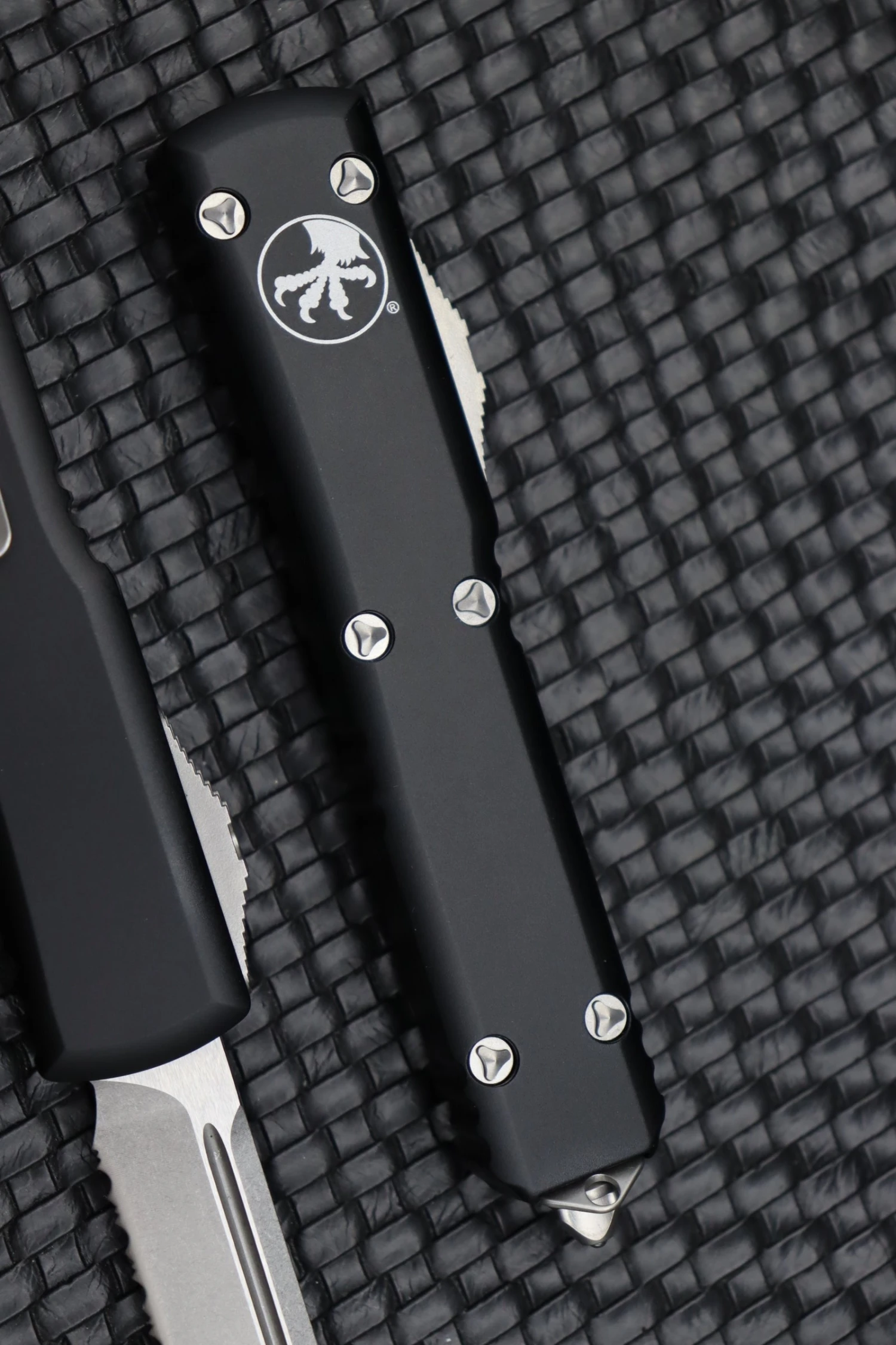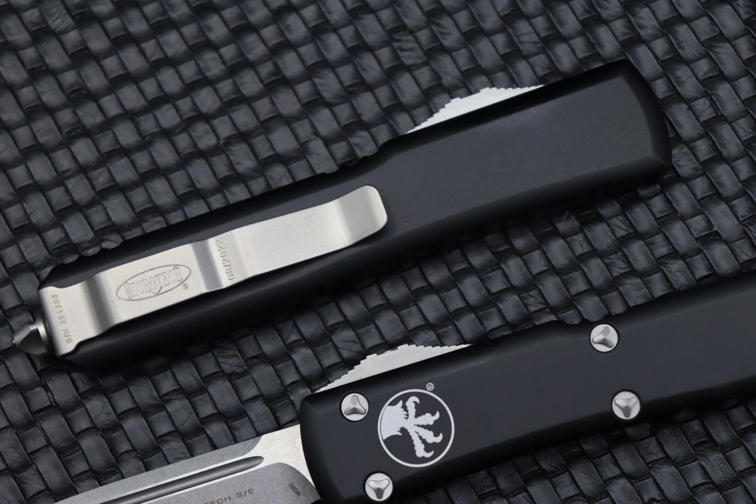 As the flagship model of the Microtech® OTF lineup, the Ultratech® sets the standard for Out-The-Front technology. Proprietary design allows the firing spring to be at rest in both the open and closed positions, drastically reducing wear on the internal firing mechanisms. The contoured chassis handle provides a lighter and more ergonomic feel and comes in a smooth, flat finish.
