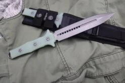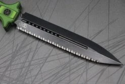 Heretic Knives Nephilim Black/Green G-10 & Double Edge Battleworn Black Full Serrated H003-8C-BLKGRN