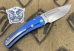 Medford Knife Praetorian T Drop Point Tumbled S45 & Tumbled Handles W/ Blue Hardware/Clip