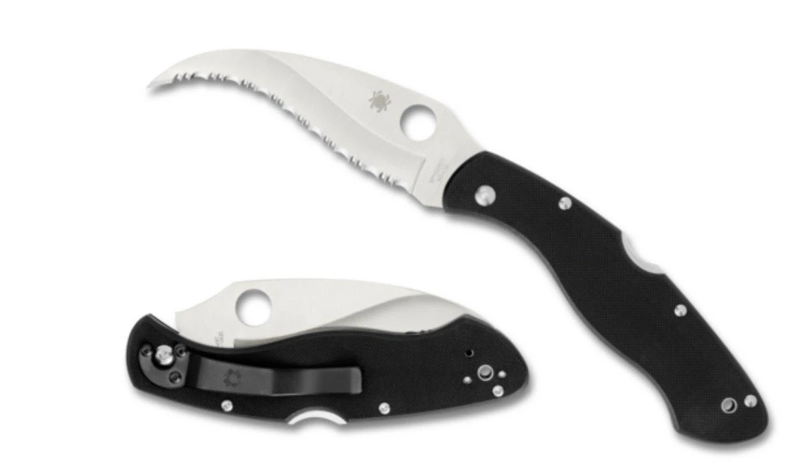 The Civilian has a patented reverse “S” blade that’s intended to be used like an oversized claw. The tip is ground to an ultra-thin profile. Deeply curved and full at the belly, the VG-10 ground blade excels in slicing and is available fully SpyderEdged. Because of its distinctly specialized features it is not intended or designed for general utility or everyday use. Curved in all the right places for ergonomic use and retention of the knife, the handle is black G-10. A two position clip supports discreet tip-up or tip down carry on the right side. One of the most specialized CLIPITS® in the Spyderco line-up, the Civilian is available in limited quantities.