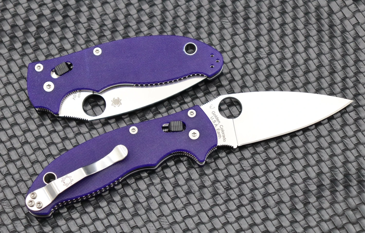 Built on a framework of full skeletonized stainless steel liners, the Manix 2ās handle is capped with textured dark blue G-10 scales that are the signature color of Spydercoās elite family of CPM S110V knives. To ensure convenient carry and instant access, the handle includes a reversibleĀ steel clip that mounts to either side of the handle butt for ambidextrous tip-up carry. It also features an oversized lined lanyard hole for easy attachment of fobs and lanyards.